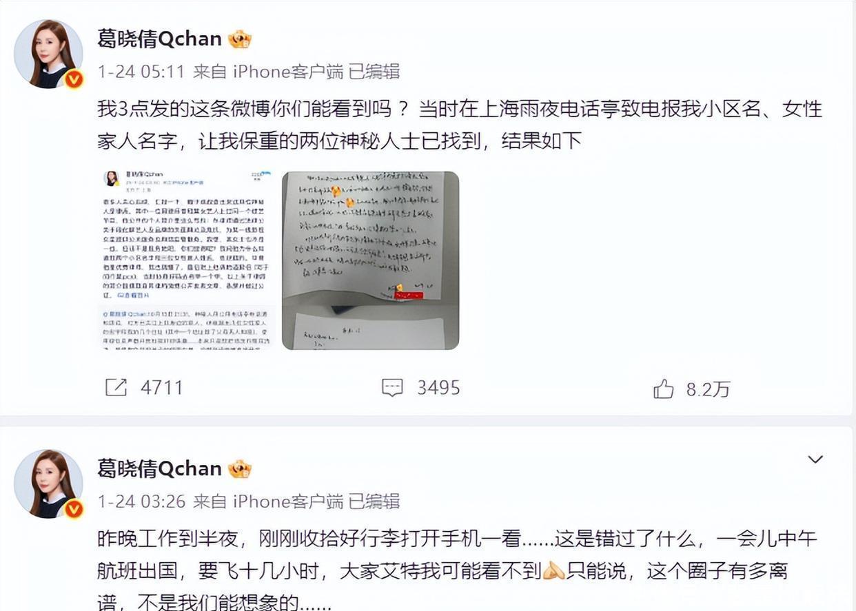 据了解,在这之前,张雨绮不仅曾用那副厚颜无耻的嘴脸插足了她和袁巴元的婚姻(有监控录像做证),还多次派出不知名的律师,对她以及她的家人进行威胁。一次又一次的挑衅,即便是像葛晓倩这样想把事情往小了说、往没事儿的方向处理的人,也已经彻底忍不住了。就这么一曝光,居然把张雨绮给吓得头都大了。